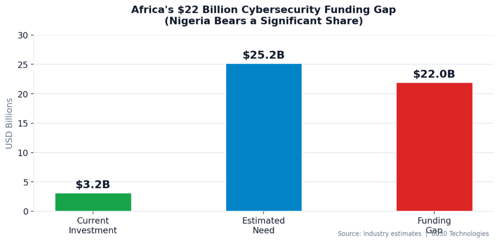 Figure 1: Africa’s $22 Billion Cybersecurity Funding Gap — Nigeria bears a significant share of the shortfall